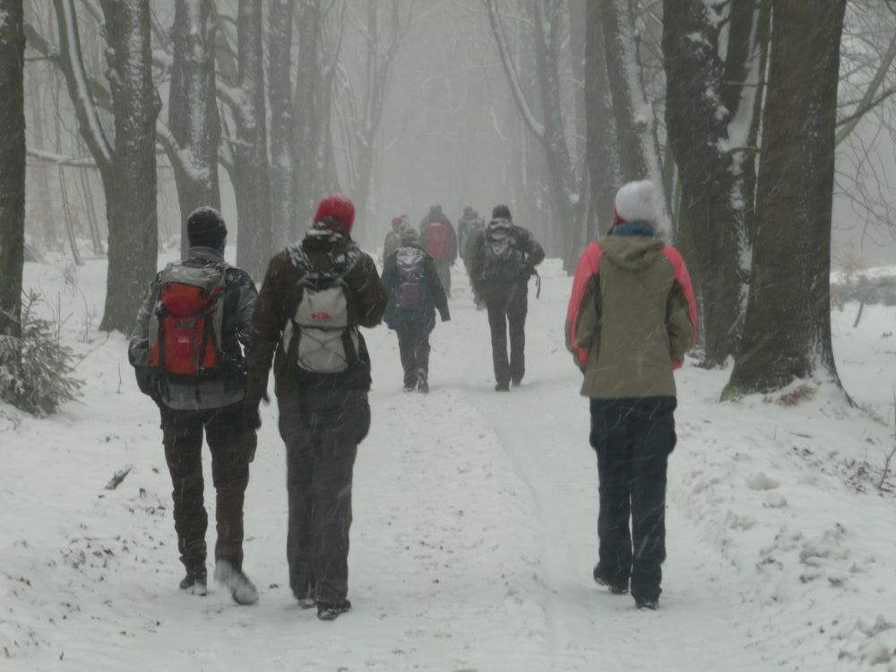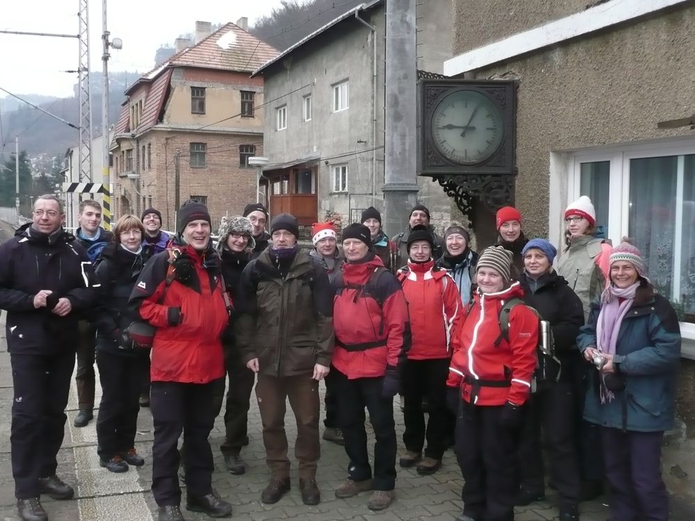 Der Magie Kundige beschworen den Tag als den letzten seiner Art. Eine zarte Fee soll dabei gefragt haben, wenn die Erde untergeht, wohin sie dann geht. Zwanzig Wagemutige scheuten sich beim Steine des Königs nicht in das stählerne Roß zu steigen, für das sie so viele Silberlinge hatten hergeben müssen. Die Versuchung war groß, die Reise beim drohenden Untergang ohne Habe anzutreten. Allein der fremde Landesherr und sein Häscher im stählernen Roß bewahrte uns vor Sünden. Der Weg führte auf dem eisernen Strang entlang hinauf zu einer Furth in Dolni Zleb. Böse Mächte hatten des Wärters Flussgefährt zerstört. So mussten die Mannen und Weiber von den steilen Ufern der tosenden Elbe durch die gar schön anzuschauende Siedlung hinauf in die dunklen Wälder und Schluchten von Niedergrund gehen. Goldmarie durfte heute Dienst tun. Mit unseren Stiefeln überschritten wir am Böhmischen Tore die Grenze zurück in das Königreich und folgten in der Dunkelheit des tiefen Waldes den Spuren von Fuchs und Hase. In einer Höhle am Großen Zschirnstein fanden wir Zuflucht und labten uns an dem, was für die letzte Reise gebraucht wurde – warmer, vergorener Saft von Trauben verfeinert mit bestem Pfeffer. Nach wenigen Sprüngen erreichten wir die offen Weiten von Reinhardtsdorf und die Kaiserkrone. Von der Wagenmeisterei in Schmilka ward uns freies Geleit nach dem Städtchen an des Königs Stein zugesichert. In des Bundes Zufluchtsstätte erfreuten die Mundschenke Holm und Wolfgang das Volk mit gar vorzüglichen erzgebirgischen Weihnachtsgebäck und dann, mit hereinbrechender Nacht, mit Gemüsesuppe, zart gebackenen Huhn in Lauchgemüse auf Nudeln und Zimtsahne auf Aprikosen-Apfelmus. Nur die Wagemutigsten und Tollkühnsten unter den Lagernden trauten sich im Angesicht des drohenden Untergangs zu später Stund hinauf zum Lilienstein. Andere Anhänger der Gesellschaft berichteten, sie selbst hätten jeden tropfenden Wasserhahn repariert, um der Sintflut zu entgehen. Wir aber spendeten dem Erdkreis und dem Städtchen unsere Ehrerbietung und waren mit dem Wärter des Flußgefährts bei seiner und unserer letzten Fahrt eins.