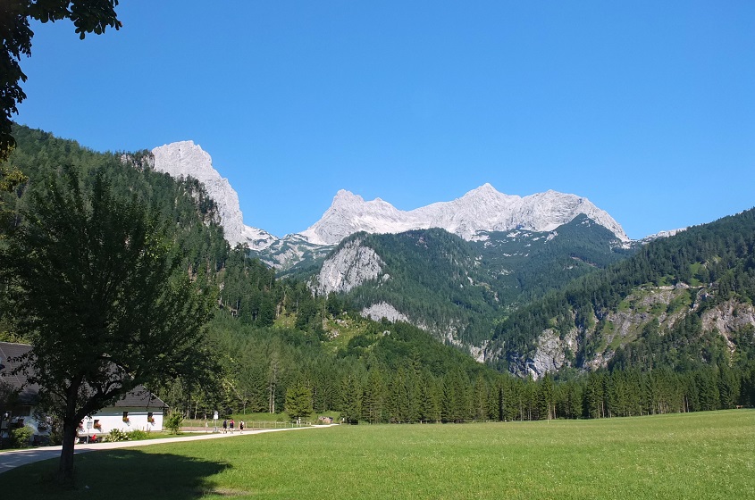 Spitzmauer, Brotfall und Großer Priel bilden diesen imposanten Anblick vom Talboden in Hinterstoder aus. Das war der Startort zum schweißtreibenden Aufstieg zum Prielschutzhaus.