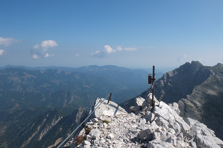 Donnerstag ging es zurück zum Prielschutzhaus. Jan und Sabine nahmen den Weg über den Schermberg und bewältigten damit den Tassilo-Klettersteig. Ich nahm den Weg über den 200 Hm tiefer gelegenen Fleischbanksattel. Der gemeinsame Abstiegsweg führte dann durch imposante Teile des Toten Gebirges, der größten Steinwüste Mitteleuropas.
