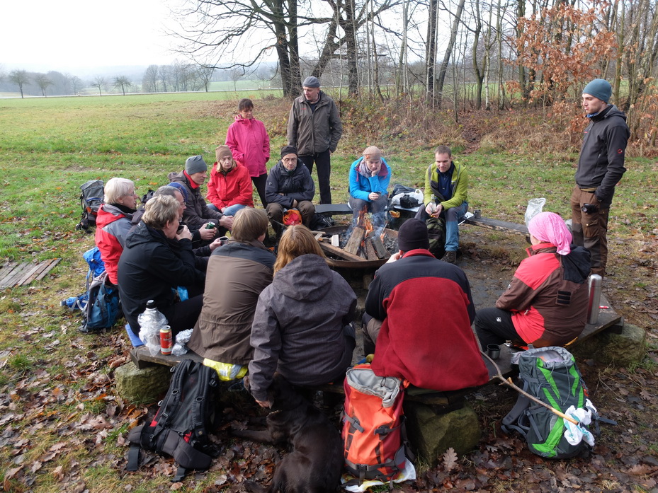 Trotz frühlingshafter Temperaturen werden zur Mittagsrast Sportgetränke der Saison gereicht. Wir wandern weiter in Richtung Rathen und entdecken in bekanntem Gebiet unbekannte Aussichten.