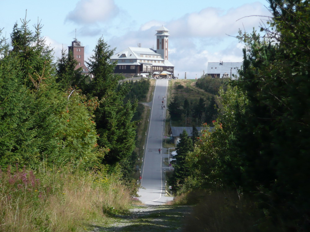 Zwölf Tausender im Erzgebirge zu erfahren, das klingt nach großem Mühsal. Morgens um neun Uhr standen wir auf dem Bahnhof Cranzahl auf 657m Höhe. Gleich vom Bahnhof führt der Weg in kurzer Entfernung über Kretscham-Rothensehma auf den Kreuzbrückenfelsen mit 1018m Höhe. Die ersten 360 Meter hatten es in sich und Fichtelberg, Keilberg, Meluzina, Plesívec (Pleßberg), Blatenskỳ vrch (Großen Plattenberg) und Auersberg würden nicht leichter sein. Trotzdem hatten wir Zeit für Blicke über das Erzgebirge. Der größere Teil der Fahrt führte über tschechisches Gebiet. Stellenweise sind die Waldwege dort ausgewaschen, verfallen oder zerfahren. Wir haben normale Straßenräder genommen, Mountainbikes wären besser gewesen. Nach 3.900 Höhenmetern bergauf und ebenso vielen Metern bergab standen wir nach 82 km und sieben Stunden auf dem Auersberg.