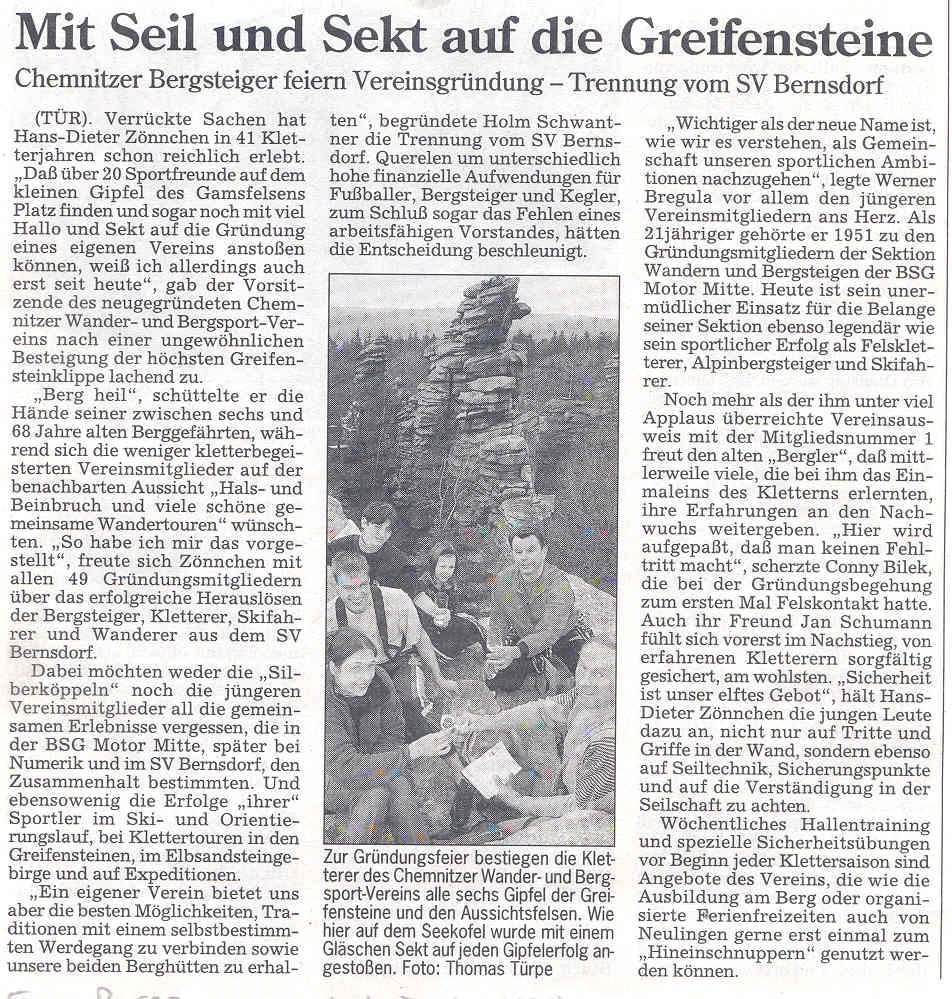 04.04.1998 - Freie Presse zur Vereinsgründung am 20.03.1998